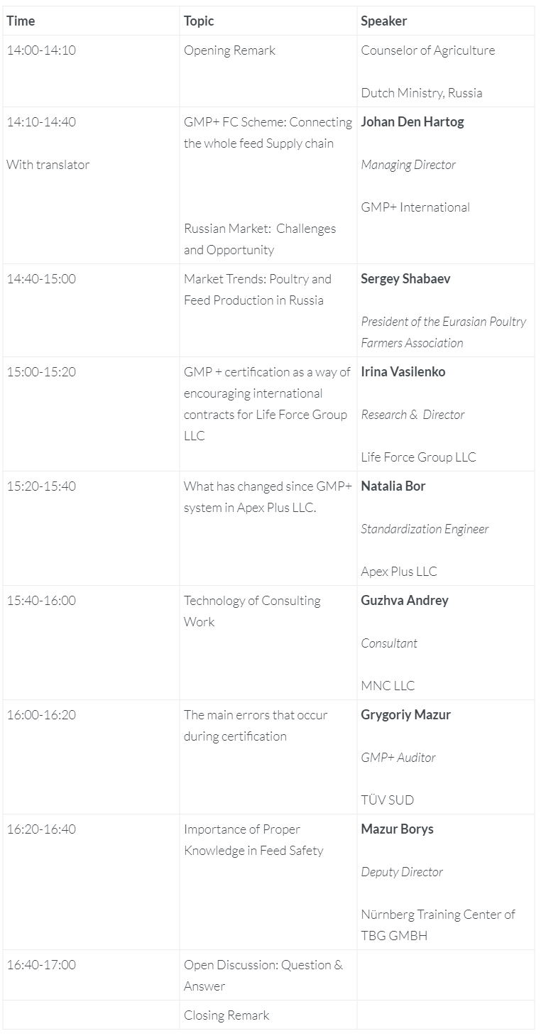 This seminar will be interesting for all companies involved in the feed production chain, who not only want to strengthen their positions in the Russian market, but also for companies that want to export to Europe.